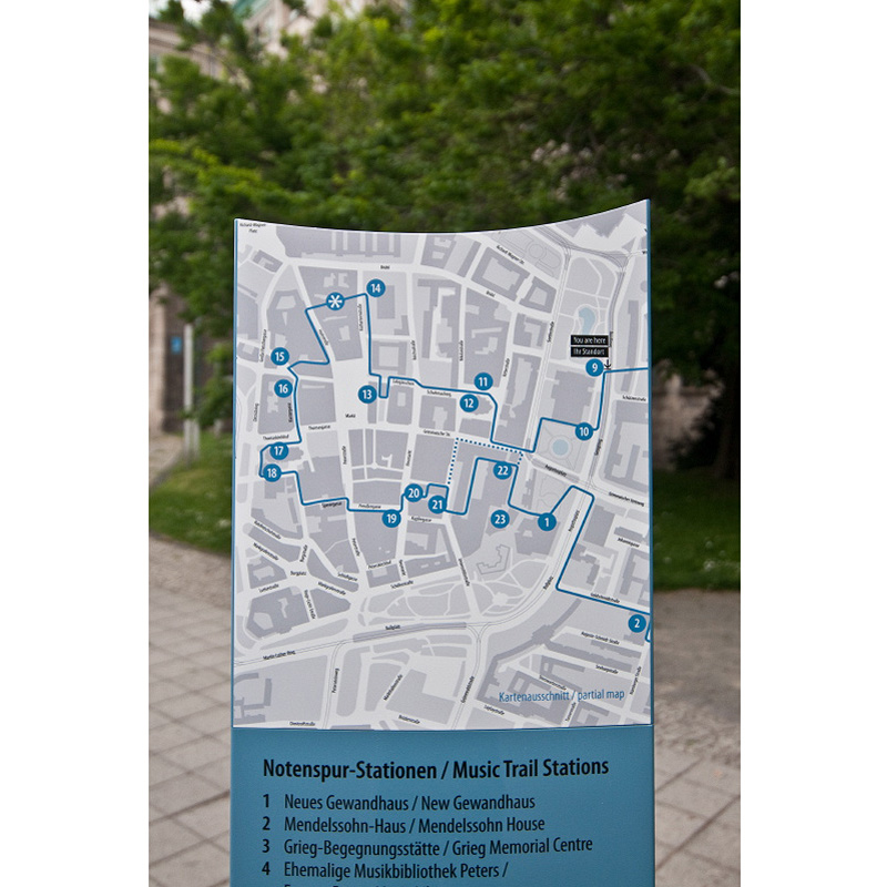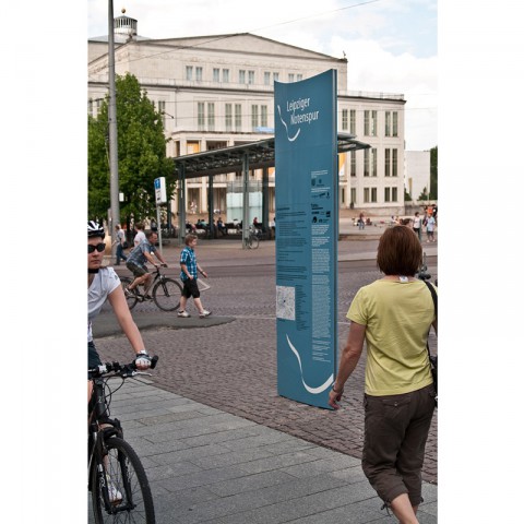 Before it has been opened, the Orientationsystem of the "Leipziger Notenspuren" has been published in the bible of orientation-systems "Signaletik und Piktogramme", produced by the DOM-publishers. |