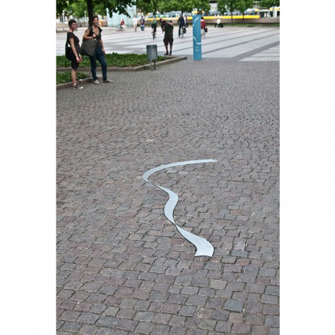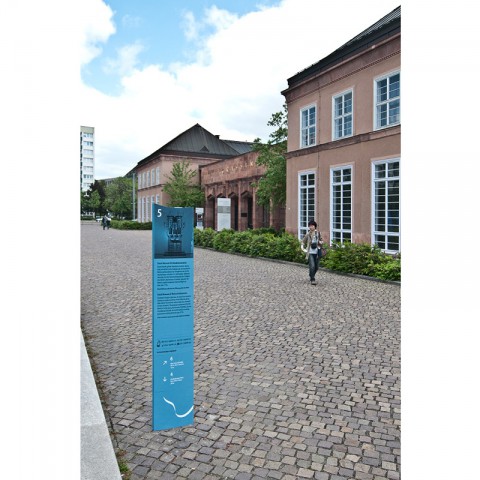 The System is two-parted. A Pylon-sign-system for the Information and a System of steel-marquetery running along the 5km-track as a form of abstract guidance. The opening was a really nice event with lots of musical performances around the city.